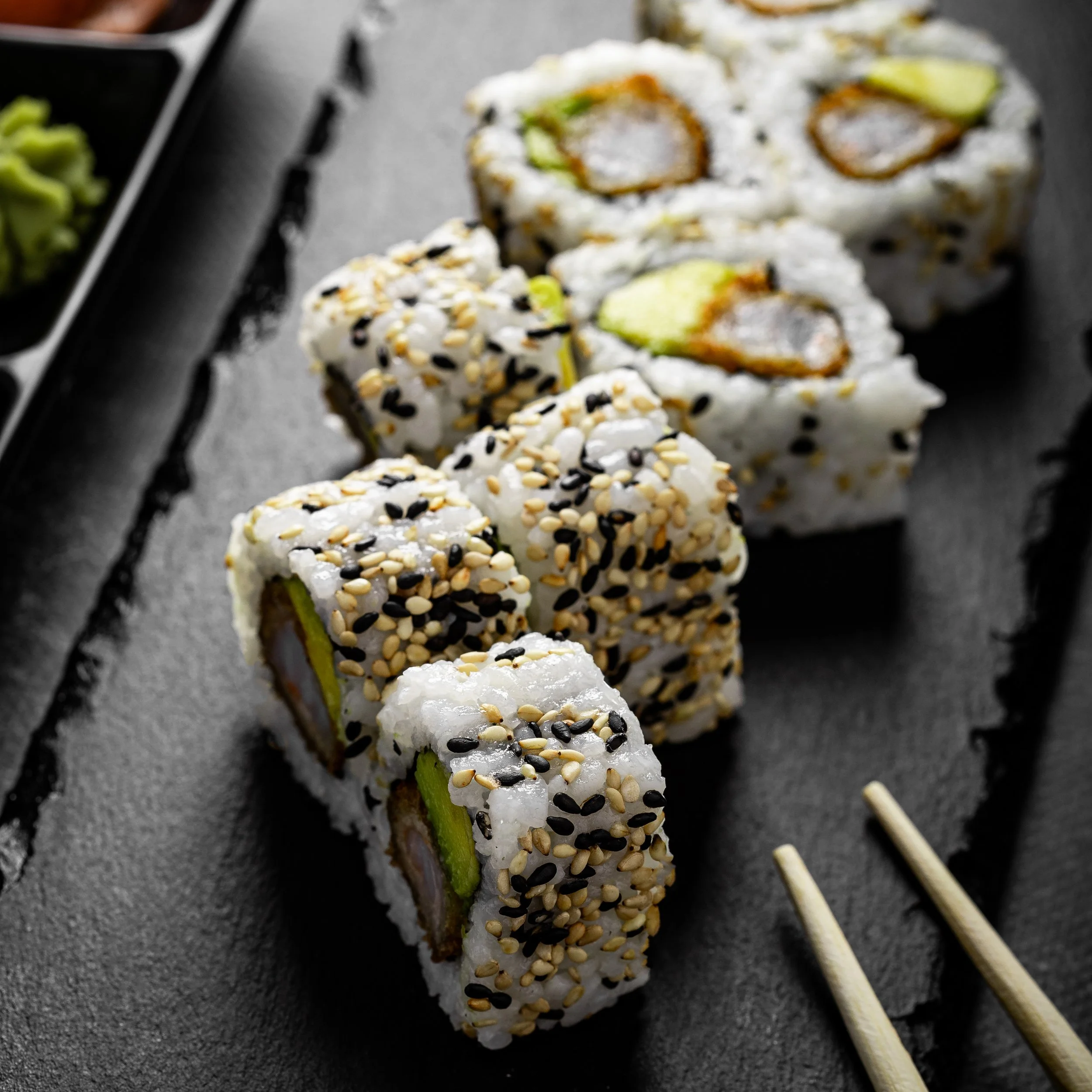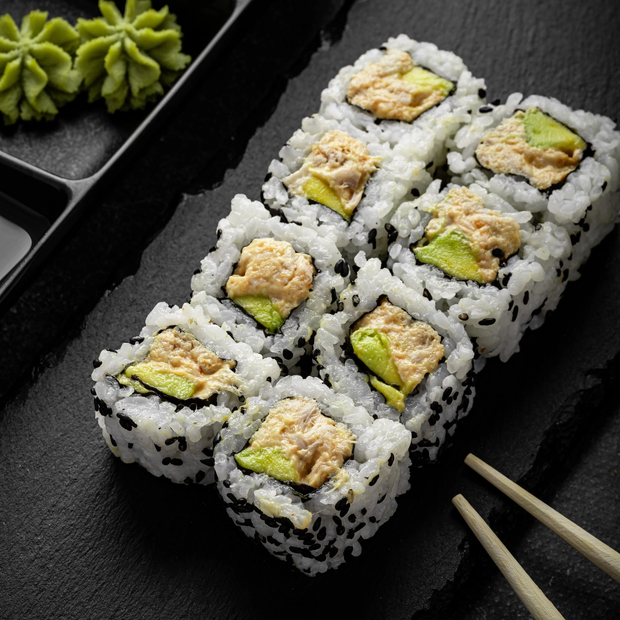 MAKIS CALIFORNIA CREVETTE TEMPURA, AVOCAT, SÉSAMES BLANC ET NOIR