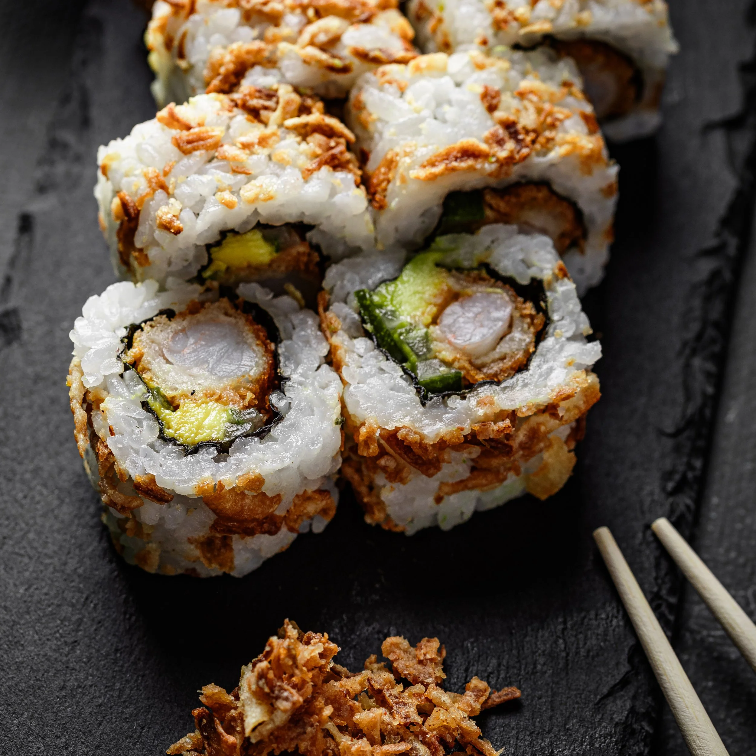 MAKIS CRISPY CREVETTE TEMPURA, CONCOMBRE, AVOCAT
